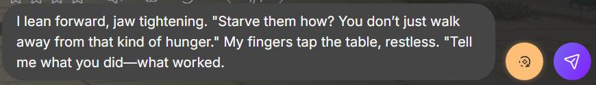 To steer the story in the desired direction, use the message editing feature and write the response you want the character to say. To do this, click the three dots in the top-right corner of the message and select .