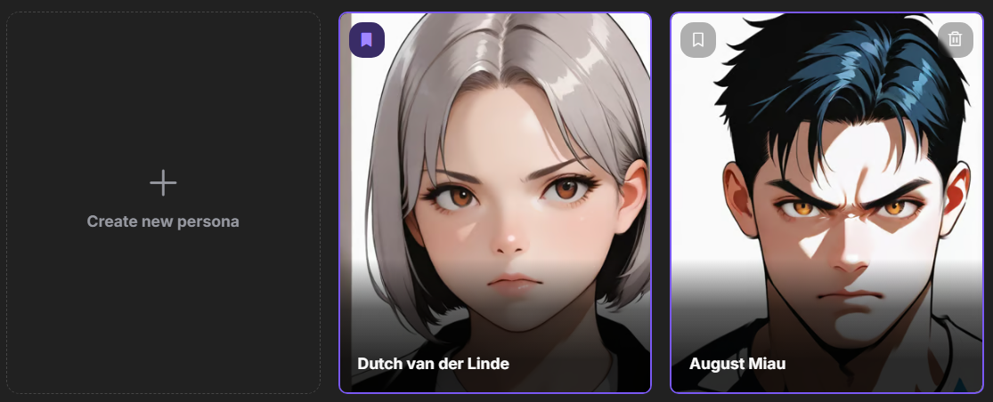 For each persona, you can generate or upload an avatar, assign a unique name, and describe its characteristics.